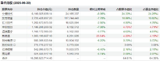 据最新定期报告显示,创业板50ETF(159949)前十大重仓股今日涨跌互现,包括宁德时代、东方财富、汇川技术、中际旭创、迈瑞医疗、新易盛、阳光电源、胜宏科技、亿纬锂能、同花顺等个股,具体持仓占比如下: